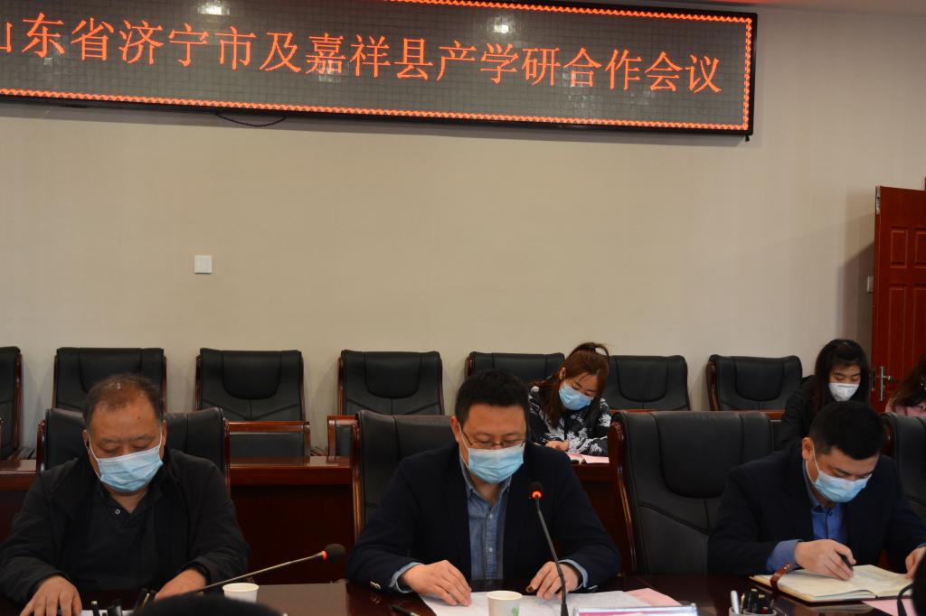 会上,朱耀麟代表学校致欢迎辞,首先他对济宁市、嘉祥县政府与企业领导的专程来访表示热烈欢迎。接着,他详细介绍了我校的学科特色与科研情况,强调济宁市和我校的产学研对接已有30余年的历史,期间取得了国家科技进步一等奖、二等奖科技成果各1项,省部级成果多项,为积极推进纺织行业科技进步做出了突出贡献。他希望我校与济宁地区的企业能进一步开展校地合作,推动校企产学研合作,更好地服务于学校成果转化和企业转型发展。