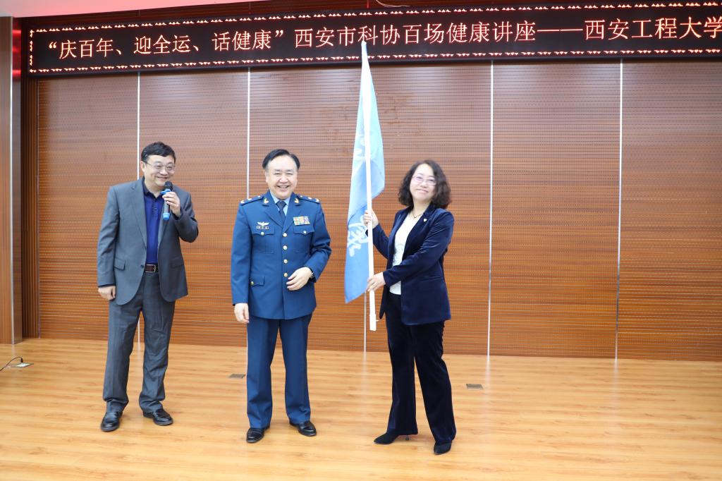 4月7日下午,“庆百年、迎全运、话健康——西安市科协百场健康讲座”西安工程大学站正式开讲,中国工程院院士、美国医学科学院外籍院士、法国医学科学院外籍院士、西安市科协主席樊代明做客我校临潼校区图书馆二层报告厅主讲。西安市科协二级巡视员刘发奎、校长高岭莅临报告会,西安市委组织部、西安市科协宣传部、学会部、我校科技处、校科协、校团委、网络与信息化管理处等相关部门负责人及200余名师生参加了报告会,副校长李鹏飞出席会议并主持。我校金花校区亦设有分会场进行同步视频直播。