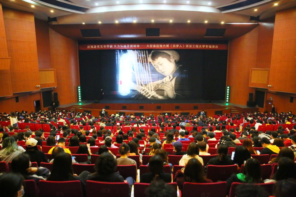 4月9日晚西安广电大剧院,我校组织全校近千名师生干部,共同观看大型秦腔现代戏《织梦人》,共同感受以赵梦桃为代表的纺织工人的先进事迹和辉煌业绩,这也是学校丰富多彩的党史学习教育中重要的一课。