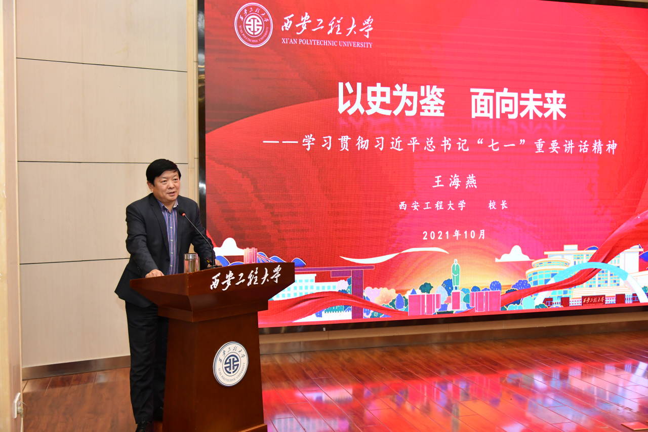 为传承党的红色基因,激发新时代工程大师生的爱国情怀,2021年10月9日,我校校长王海燕讲授题为《以史为鉴,面向未来——学习贯彻习近平总书记“七一”重要讲话精神》的专题党课。纺织科学与工程学院和材料工程学院中心组成员、各支部书记及师生党员代表聆听了党课。