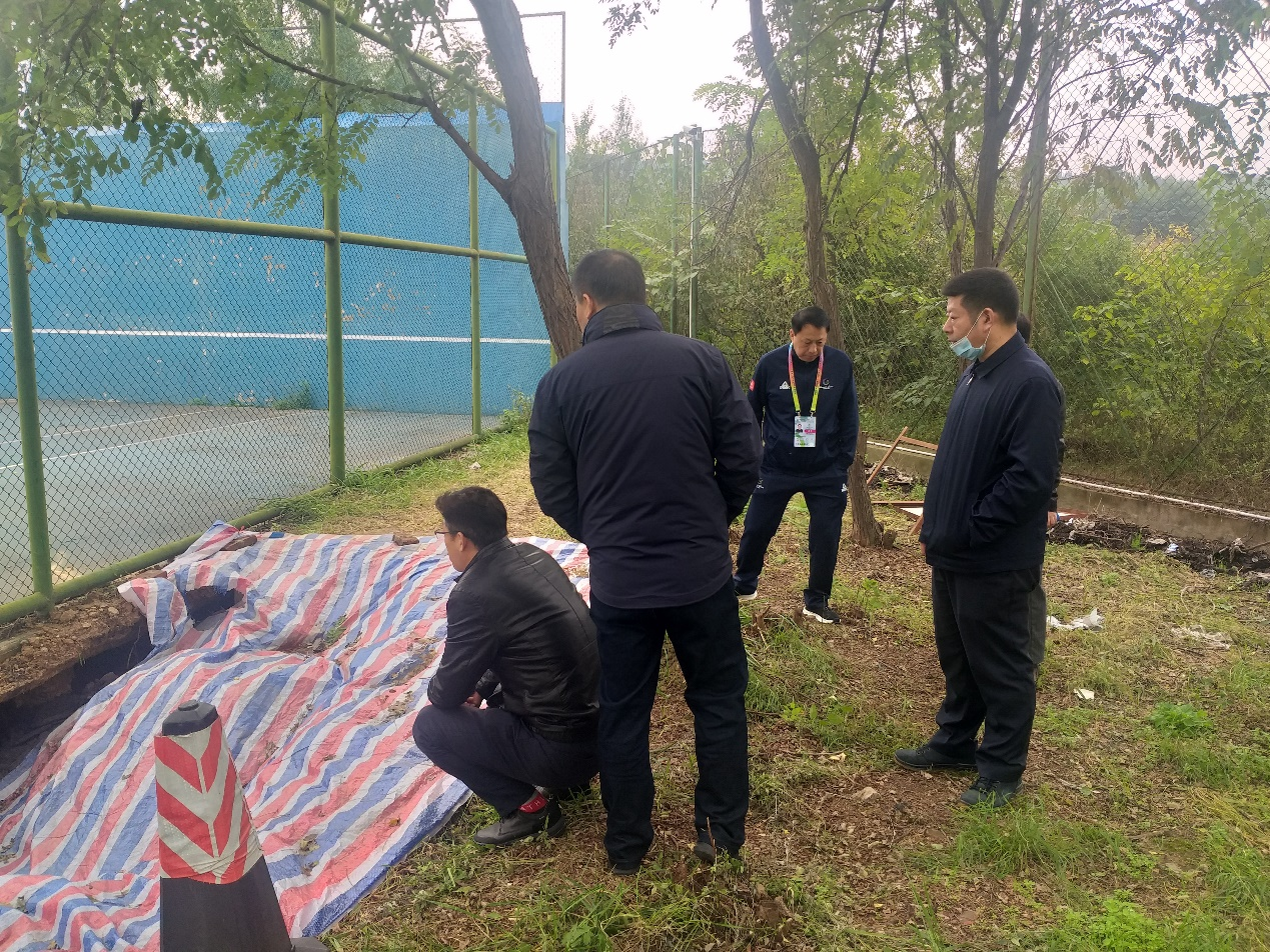 因近期雨水较多,为进一步加强校园环境及安全,在前期不断排查校园出现隐患的基础上,10月13日上午,副校长朱永民组织国资处、后勤管理处和体育部等部门负责人对临潼校区南体育场、篮球场、排球场和西围墙沿线等重点部位进行实地查看降雨对运动场地和沿线围墙产生的影响,对后勤管理处、体育部正在实施的维修整治工作进行现场检查。