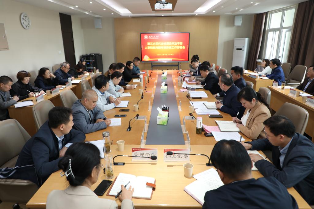 会上,党委组织部部长黄海峙对我校第三次党代会换届选举的主要任务、时间安排、主要议程、方法步骤、选举办法、工作要求等进行了说明,对党代会换届选举下一步工作和干部人事档案问题专项排查工作进行了安排部署。