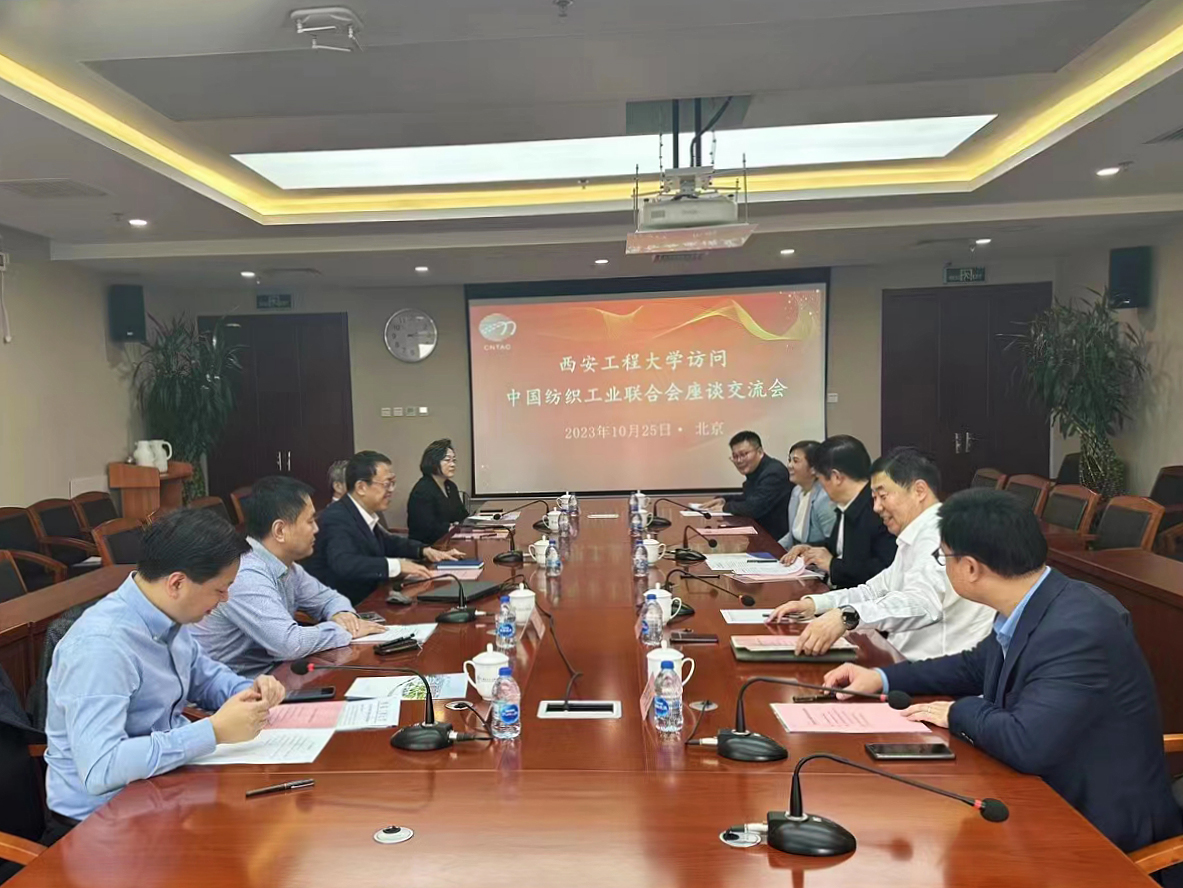 10月25日,校长王海燕带队赴中国纺织工业联合会走访交流,副校长殷永建随同走访。中国纺织工业联合会副会长李陵申接见并出席座谈会、中国纺织服装教育学会会长倪阳生、中国纺织工程学会理事长伏广伟、中纺联办公室主任段红、中纺联科技发展部副主任张传雄等参加座谈交流。